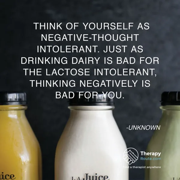 Think of yourself as negative-thought intolerant. Just as drinking dairy is bad for the lactose intolerant, thinking negatively is bad for you. - Anonymous