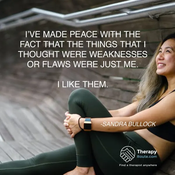 I've made peace with the fact that the things that I thought were weaknesses or flaws were just me. I like them. - Sandra Bullock