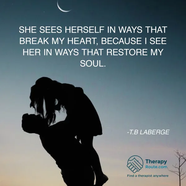 She sees herself in ways that break my heart, because I see her in ways that restore my soul. - T.B. LaBerge