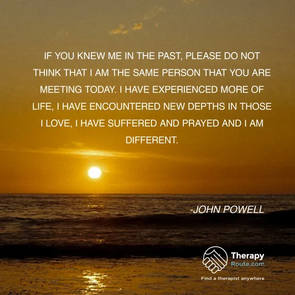 If you knew me in the past, please do not think that I am the same person that you are meeting today. I have experienced more of life, I have encountered new depths in those I love, I have suffered and prayed and I am different. - John Powell